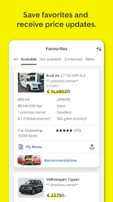 Save your favorite cars on your notepad, receive related price information, compare your bookmarked car offers or share them with friends..