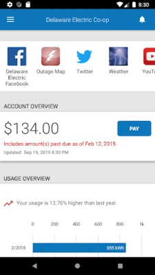 DEC Connect provides Delaware Electric Cooperative customers account management at their fingertips. Customers can view their usage and billing, manage payments, notify customer service of account and service issues and receive special messaging from their utility. Additional Features: