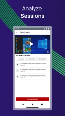 * Monitor Live & Recorded Sessions: Monitor live sessions, review activity logs, and terminate sessions if necessary.