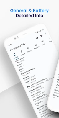 - Memory: RAM (total, available), Internal & External Storage, etc.
