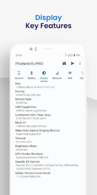 - Display: Display Size, Density, Refresh Rate, Luminance, Brightness, GPU Vendor, etc.
