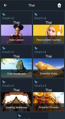 Bluebird brings language learning to the world’s population in an unprecedented way. You can learn Thai from any of 146 narration languages.