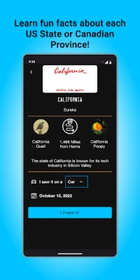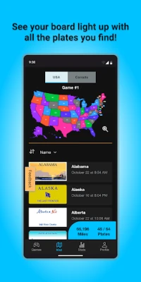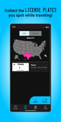 * View an updated counter and map as you spot each state plate on vehicles you see on the road