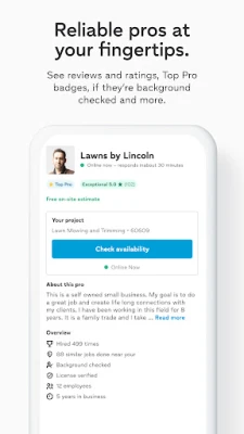 ► Thumbtack finds professionals and house services and shows you a list of available pros in your area. You can quickly find the one that’s right for your home project and book a service directly in the app.