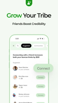 • Connect with friends to increase their borrowing limit and your own.