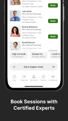 Expert Booking: Access licensed therapists listeners and coaches based on your location and preferences.